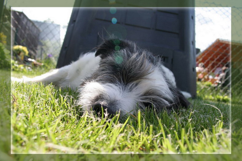 Wenn beim Grillen alle aufgegessen haben, kann er sich auch in den Schatten legen und die Augen zu machen