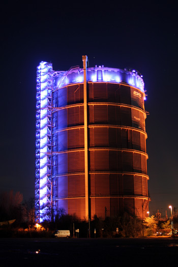 Gasometer Oberhausen, direkt vom davor liegenden Parkplatz aus fotografiert.