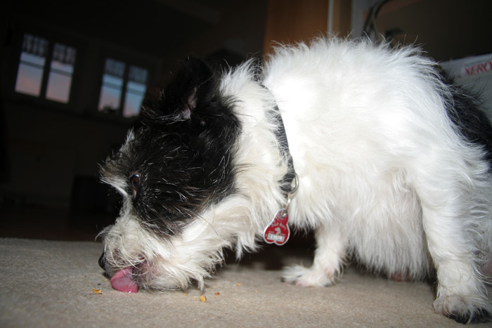 Schokoladenkrümel auf dem Teppich ... die mußten abgeschleckt werden.